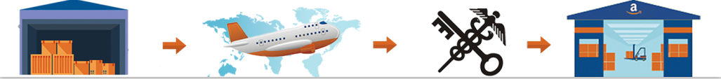 国内集货-出口报关-空运-到达目的地机场-清关-交UPS派送-FBA签收入仓