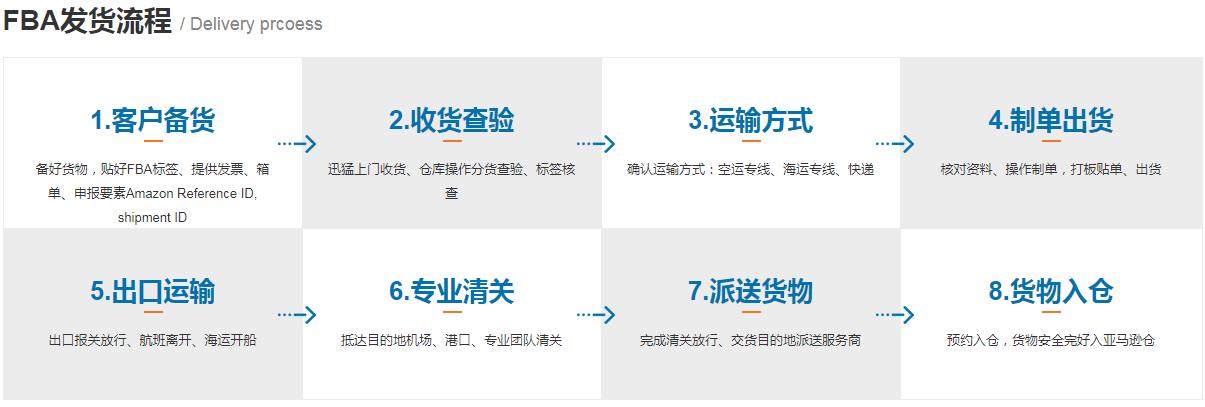 迅猛物流,自主开发美国FBA线路,自主打板,将FBA包裹集中起来,通过空运方式运到美国机场,再由指定代理把货从海关清出来,再交由当地合作的快递公司派送到亚马逊仓库入仓!具体过程;